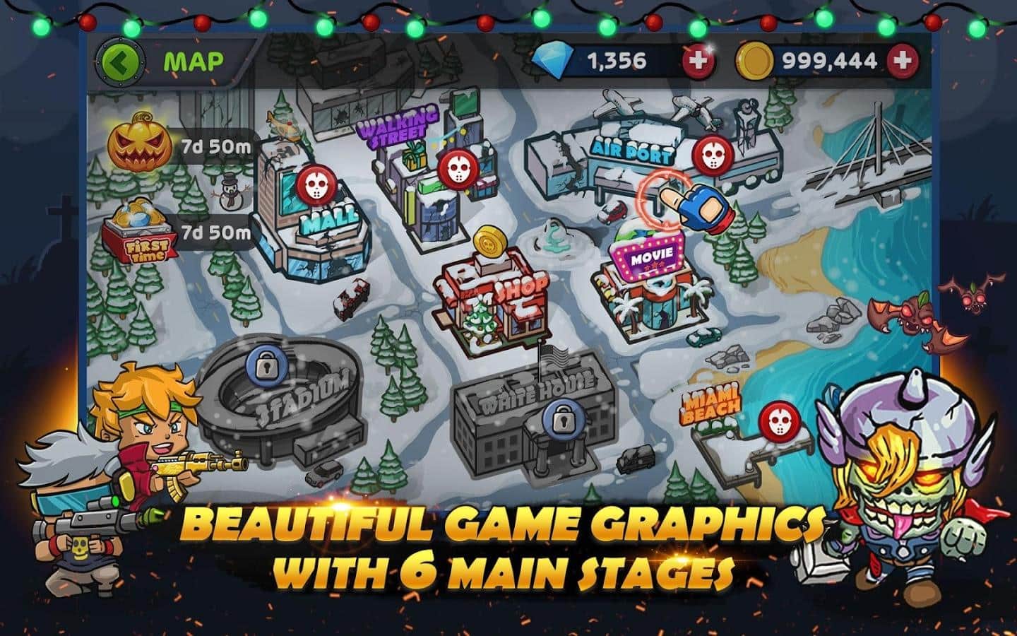Zombie Survival: Game of Dead – увлекательный тир на андроид, где вы будете уничтожать толпы зомби. В этой игре вы перенесетесь в недалекое будущее в 2030 год, где в Нью-Йорке высадились толпы зомби и атаковали все людей, превратив их в ходячих мертвецов. После этого ужасного дня выжил только один человек по имени D-Man. Начните планировать свою войну против зомби, взяв в руки оружие и заняв удачную позицию, ведите огонь по многочисленным противникам окружающих вас со всех сторон. Перемещайтесь по трем различным локациям таким как: центр молл, улица и аэропорт. С каждым новым уровнем сложность игры будет увеличиваться и вам придется изрядно постараться, чтобы завершить их все. Зарабатывайте золото и драгоценные камни и за выполненные миссии обновляйте свое оружие.