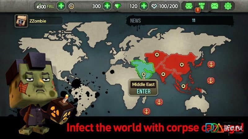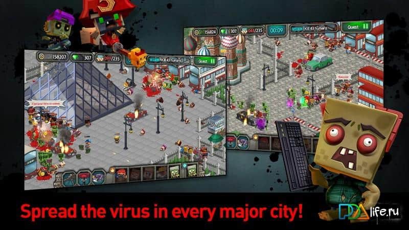 Zombie Virus - сумасшедший учёный занимающейся изучением болезней и вирусов создал нечто, что привело к глобальному зомби-апокалипсису. Новый вирус распространяется от Северной Кореи во все уголки на шей земли, количество зомби растёт с каждым часом. Заражённые нападёт на обычных людей, и конец человечества уже близок. Играйте сумасшедшим учёным и делайте всё возможное, чтобы заражение планеты двигалось гораздо быстрее. В игре более 120 вдов зомби, так что вы не соскучитесь.