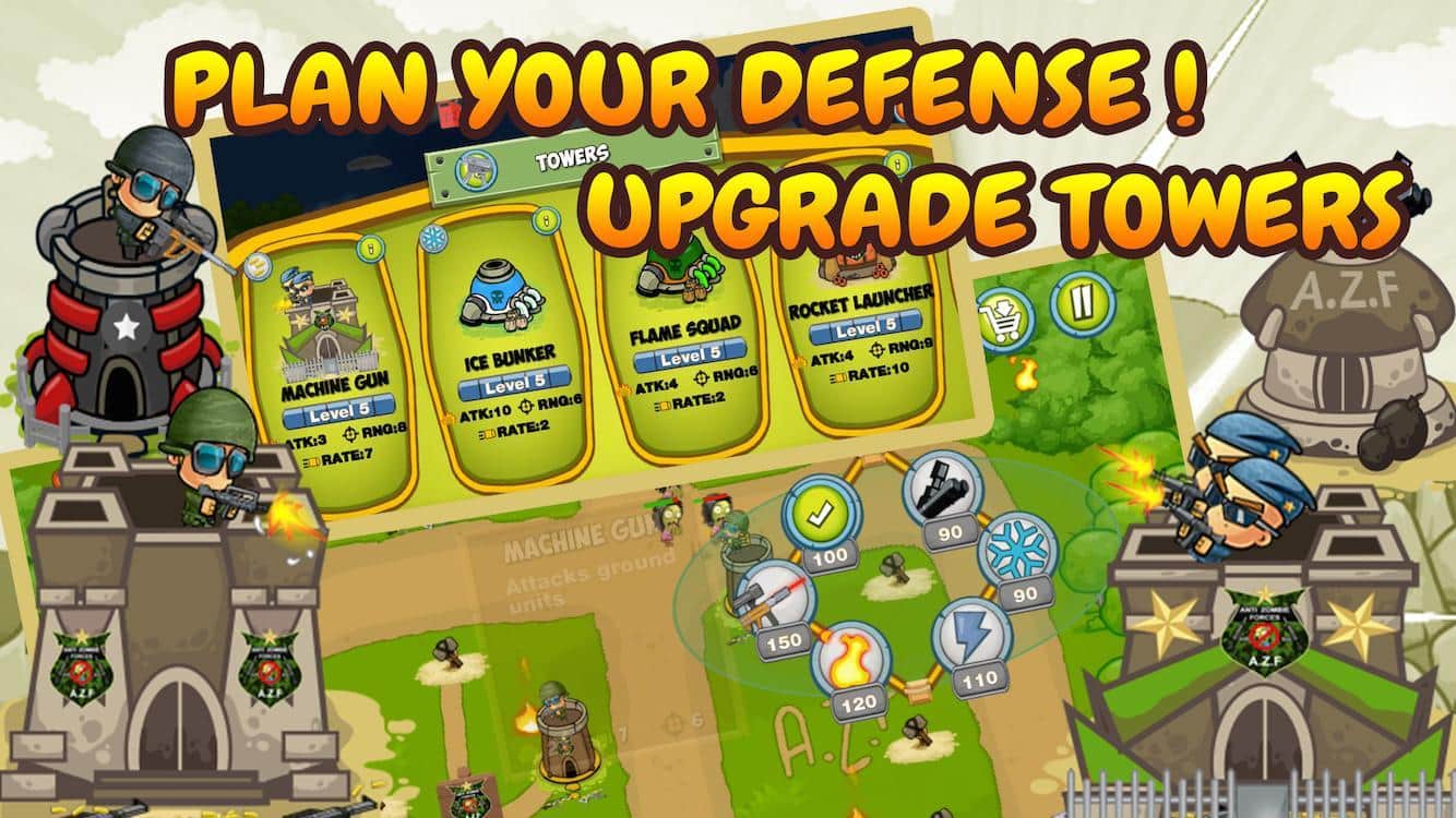 Zombie Wars: Invasion – зомби снова наступают и вашей задачей будет уничтожить их всех. Зомби хотят захватить весь мир и погрузить его в хаос. Вашей задачей будет не дать им это сделать, расставляйте на их пути мощное оружие и солдат. Начните свою войну против зомби и защитите свою базу от них. Применяйте автоматические пушки, лазеры, огнемёты и заморозку, а также мощь своих солдат. Командуйте своей армией и применяйте уникальные способности каждого солдата, чтобы переломить ход событий и победить всех врагов.