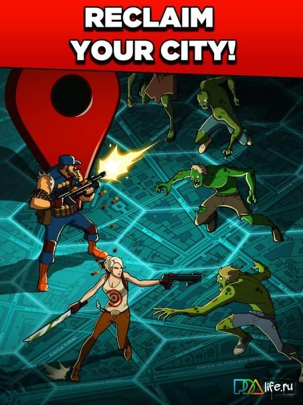 Zombie Zone – World Domination – Присоединяйтесь квыживших в вашем городе ведите борьбу против апокалипсиса и злобных зомби! Поднимите лучшую армию солдат, завоёвывайте новые зоны, защищайте свою территорию и верните свой город в первоначальное спокойное состояние. Создайте свой автопарк с большим количеством машин, потому что постоянное движение это единственный способ выжить в этом нестабильном и опасном мире. Вы не одни с вами тысячи игроков онлайн по всему миру, сообща вы сможете одолеть зомби. Игра использует данные вашей геолокации, на их основе строится игровая карта.