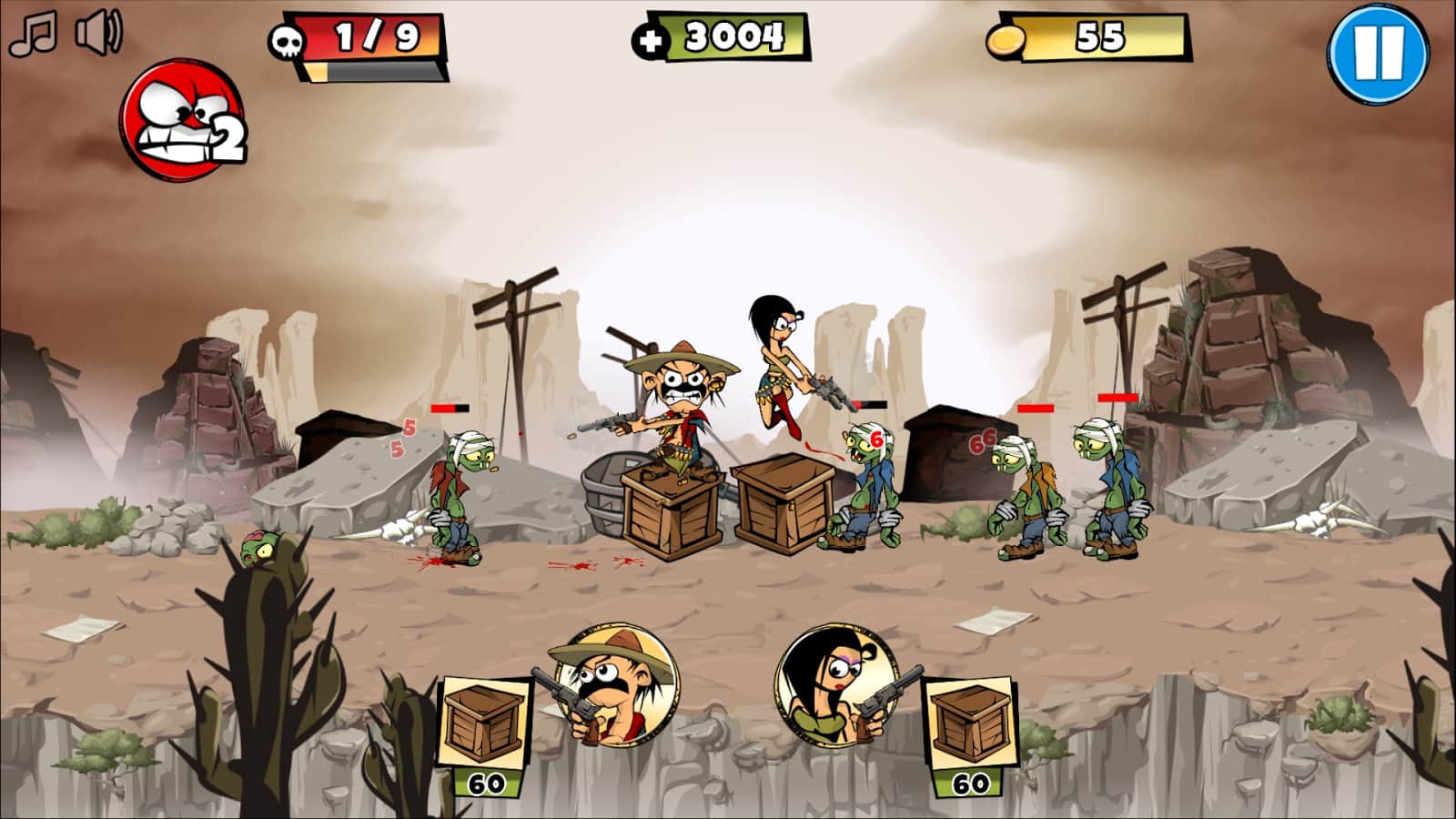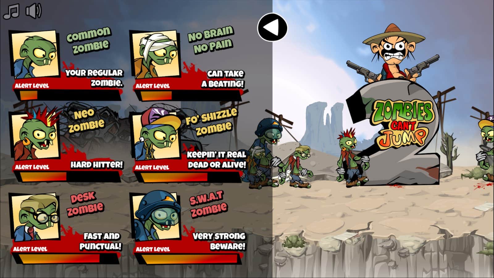 Zombies Can't Jump 2 – вторая часть популярной игры на андроид, где вам предстоит помочь героям защититься от зомби. Настал день апокалипсиса, когда все люди превратились в зомби и теперь вам необходимо помочь двум героям пережить это страшное время. Берите в руки оружие и занимайте свое место на баррикадах посреди экрана и уничтожайте зомби приближающихся к вам. На пути ходячих мертвецов расставляйте ловушки в виде мин, автоматических пушек и других приспособлений и не дайте им приблизиться к вам. Применяйте для защиты различное оружие такое как: арбалеты, пистолеты, гранатометы, луки и другие. Продержитесь на протяжении 30 уровней и установите свой рекорд в этой игре.