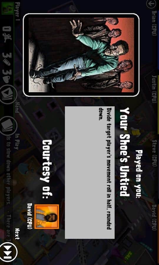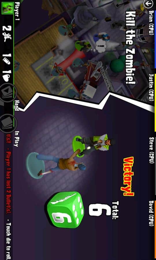 Zombies!!! - отличная игра для windows phone. Играть можно компанией, вы в роли человека попавшего в город который кишит зомби. Кидаем кубик и смотрим что вас ждёт. Выигрывает тот кто первый улетит на вертолёте или уничтожит 25 зомби.