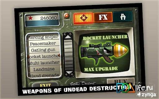 Кроме того некоторые виды оружия можно комбинировать друг с другом для получения еще более мощной разрушительной силы действия. Все эти виды вооружения вы можете получить, убивая зомби или купить в внутриигровом магазине.