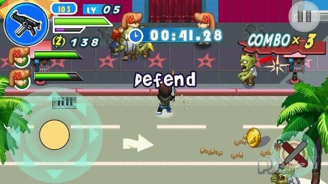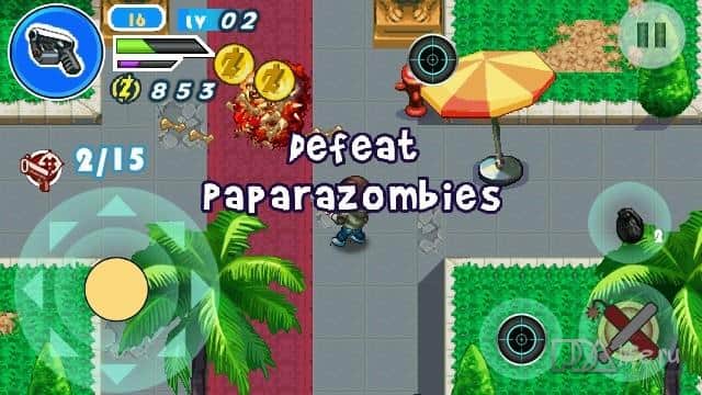 Zombiewood - голливуд захватили зомби, но остался в живых один не опытный студент который хочет найти свою подругу потерявшийся в этом хаосе. В игре 68 уровней с элементами прокачки. Большой арсенал, включающий динамит, огнемет, ружья, автоматы и многое другое, очень веселый и красочный интерфейс.