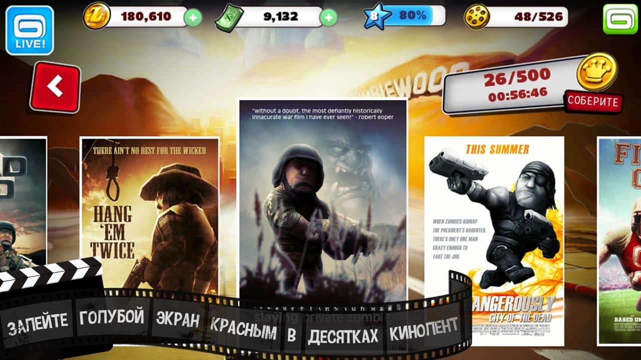 Zombiewood на Андроид – это Голливуд, в котором балом правят Зомби! На улицах, где любили расхаживать звезды и супер звезды по красным дорожкам, теперь бродят зомби. Настоящий хаос. Но это только на руку любителям снимать ужастики. Отличный сюжет. Что ж, станьте режиссером и снимите свой оскароносный фильм. Вам предстоит уничтожать зомби массой разнообразного оружия, спасать людей, в конце концов - остаться в живых! И все это стоит снимать на пленку, а за бестселлер получить звезду. Чем больше звезд за каждый снятый эпизод вы получите, тем быстрее приблизитесь к возможности снимать второй фильм. И еще - собирайте монетки - они очень понадобятся для нового оружия или других прелестей, которые вам просто необходимы! Станьте новым Спилбергом!