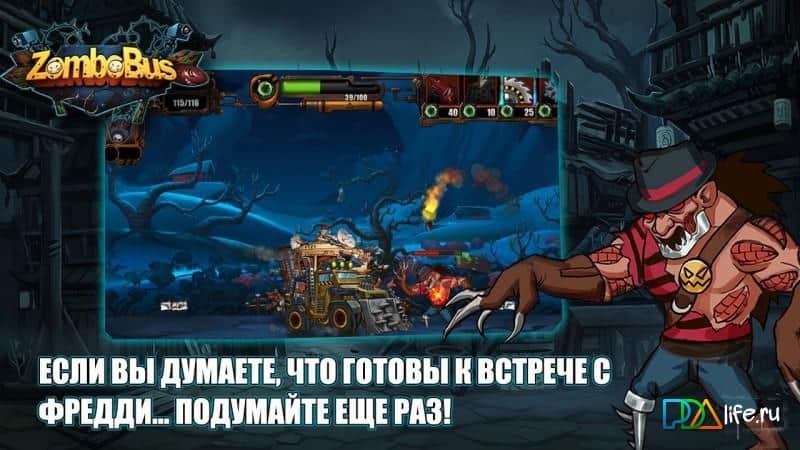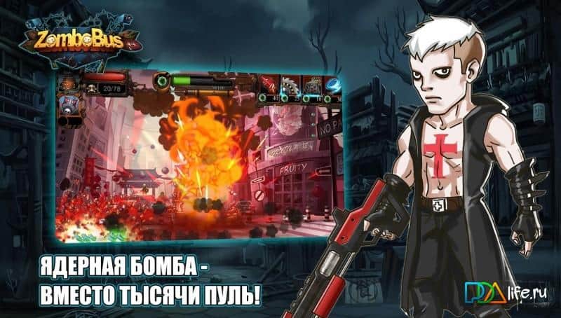 ZomboBus: Выживание – стратегия из жанра Tower Defense на андроид, где вы окажитесь в мире погрязшем в зомби апокалипсисе. В этой игре действия будут разворачиваться на фоне всемирного зомби апокалипсиса, где вашей единственной защитой от кровожадных монстров будет ваш автомобиль. Берите в руки мощное оружие и защищайтесь от натиска зомби. Эта игра порадует вас различными атаками которые будут осуществлять герои игры такие как: пулеметчик Босс Ли, снайпер Малышка, бомбардировщица Ака-47, Декстер с дробовиком и огнеметчик Гренадер. Каждый герой в этой игре обладает своими уникальными атаками и оружием которые пригодятся вам в бою. Дайте отпор огромному наплыву зомби которые будут атаковать ваш автомобиль с воздуха и земли. Путешествуйте по различным локациям игры таким как: город крови, ферма ужаса, преисподняя и другим.