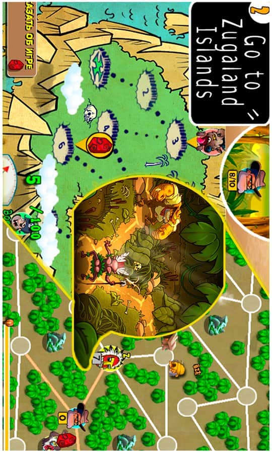 ZugaLand – уникальная аркада с элементами головоломки, в которой вы отправитесь в захватывающее приключение на таинственный остров. В этой игре вам предстоит выбрать себе одного из четырех персонажей и начать свое опасное путешествие, преодолевая болотистые местности, горные перевалы, сражаясь с ужасными животными и убегая от каннибалов. Передвигайтесь по узким тропам и ищите обрывки старых карт, которые помогут вам найти древние амулеты и стать более сильным и могущественным. Это увлекательная игра которая надолго привлечет ваше внимание, от которой вы не сможете оторваться пока не пройдете ее целиком.