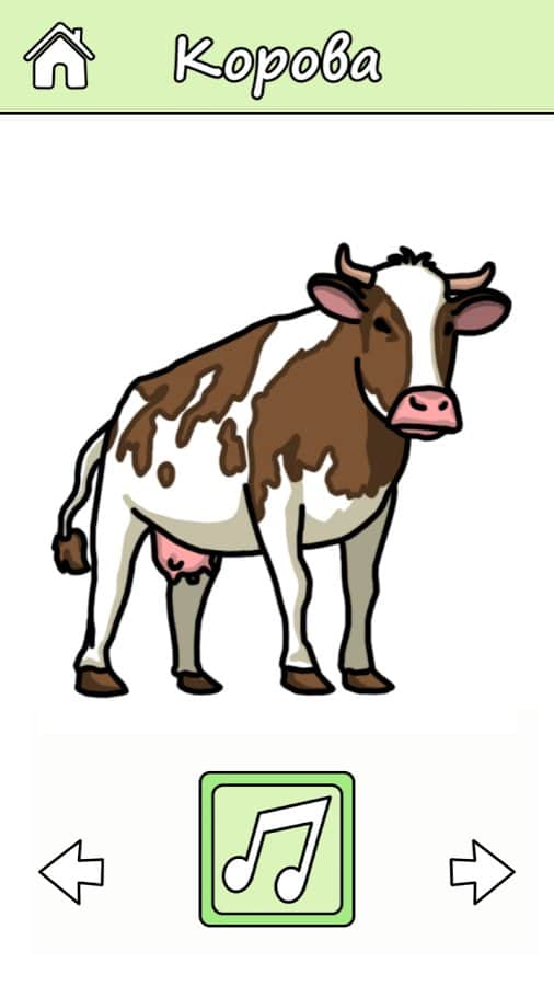Эта игра очень понравиться вашим детям и с помощью нее они смогут выучить все названия домашних животных и узнать, какие звуки издает то или иное животное.